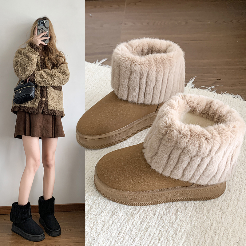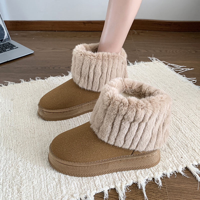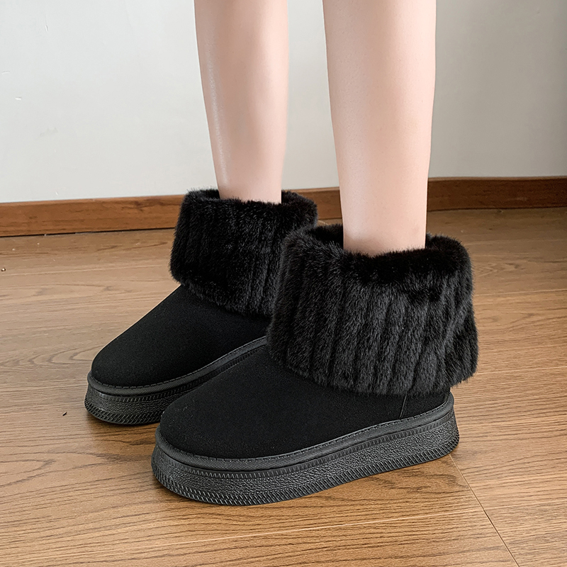 女靴子靴子韩版潮时尚保暖防滑绒面短靴圆头