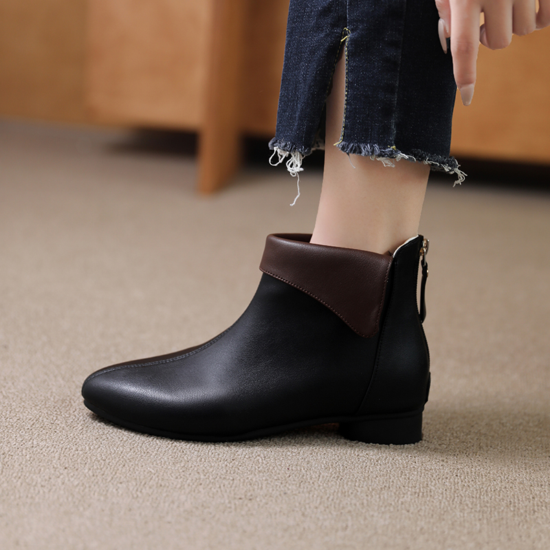 女靴子靴子韩版潮时尚保暖防滑短靴圆头粗跟