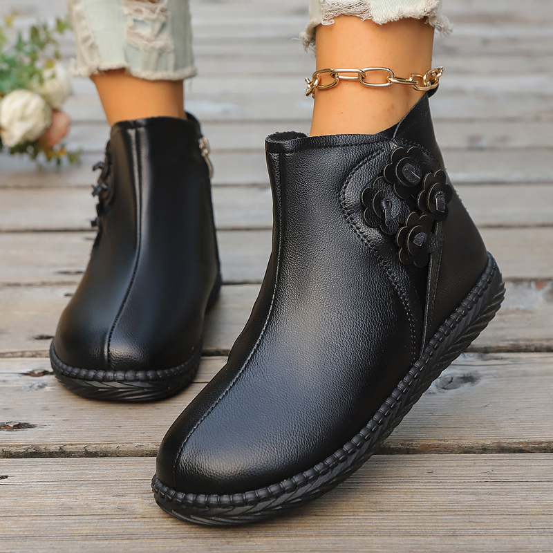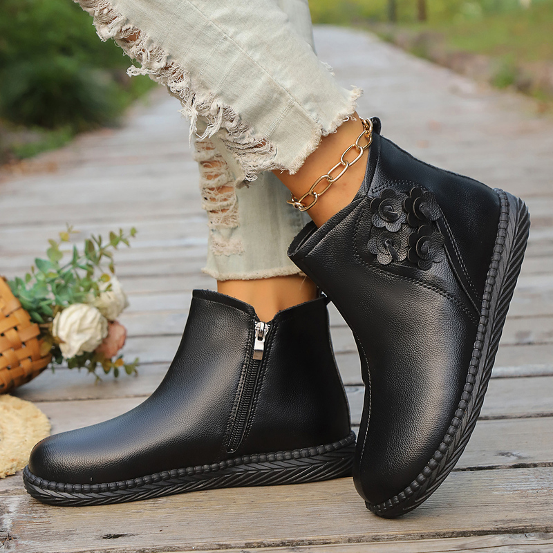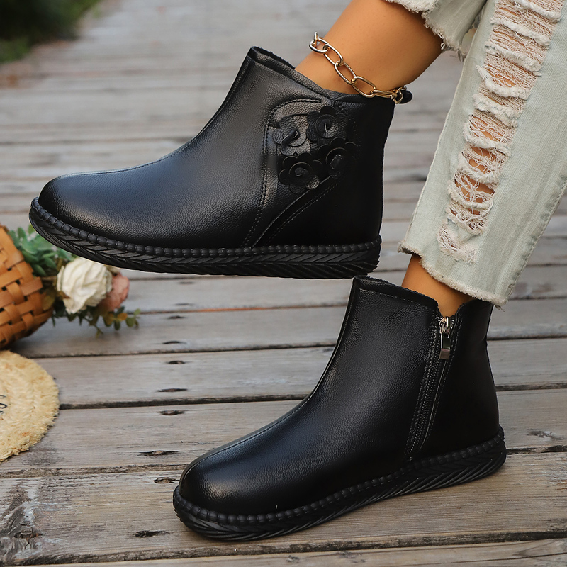 女靴子靴子韩版潮时尚保暖防滑短靴圆头粗跟