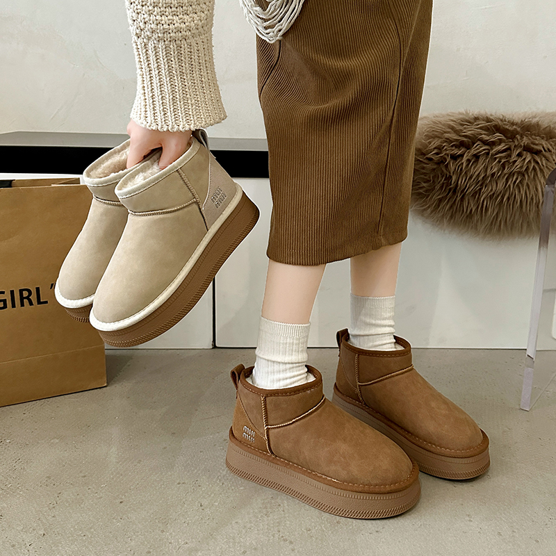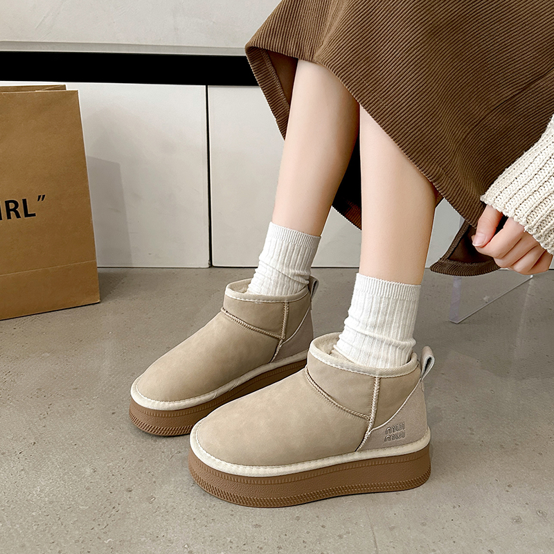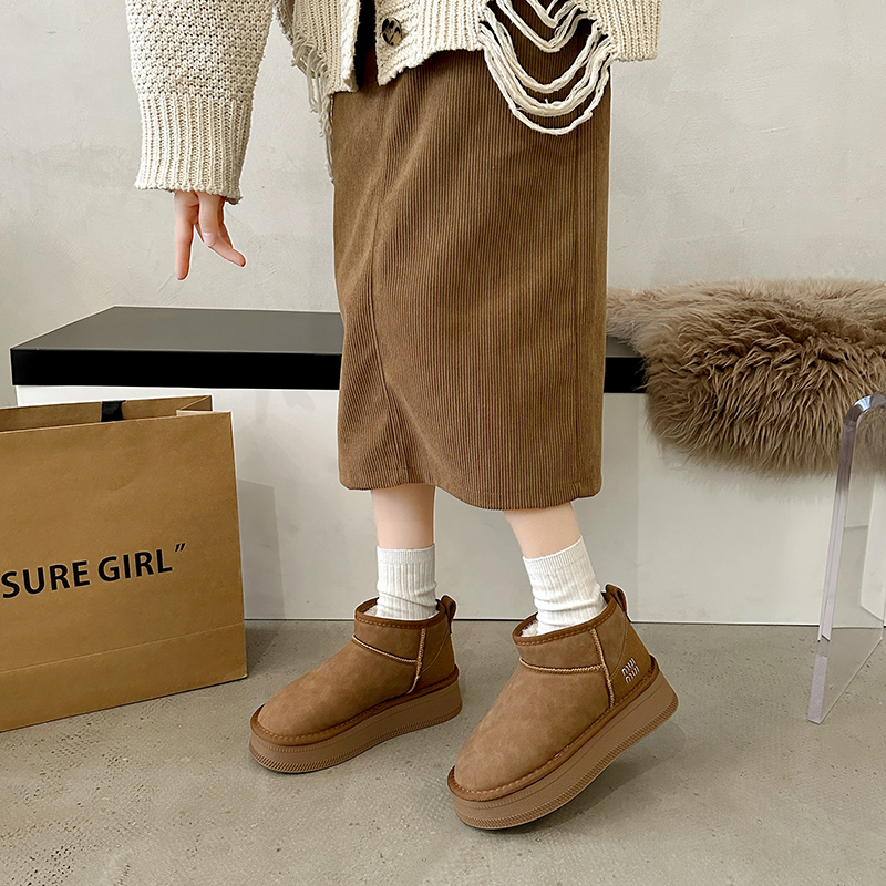 女靴子靴子韩版潮时尚保暖防滑绒面短靴圆头