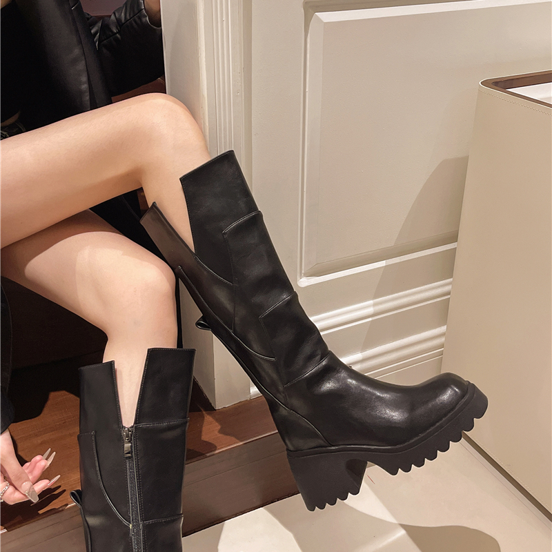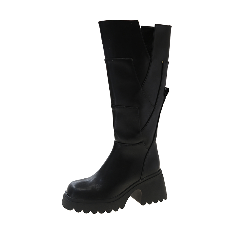 女靴子靴子韩版潮时尚保暖防滑长靴圆头粗跟