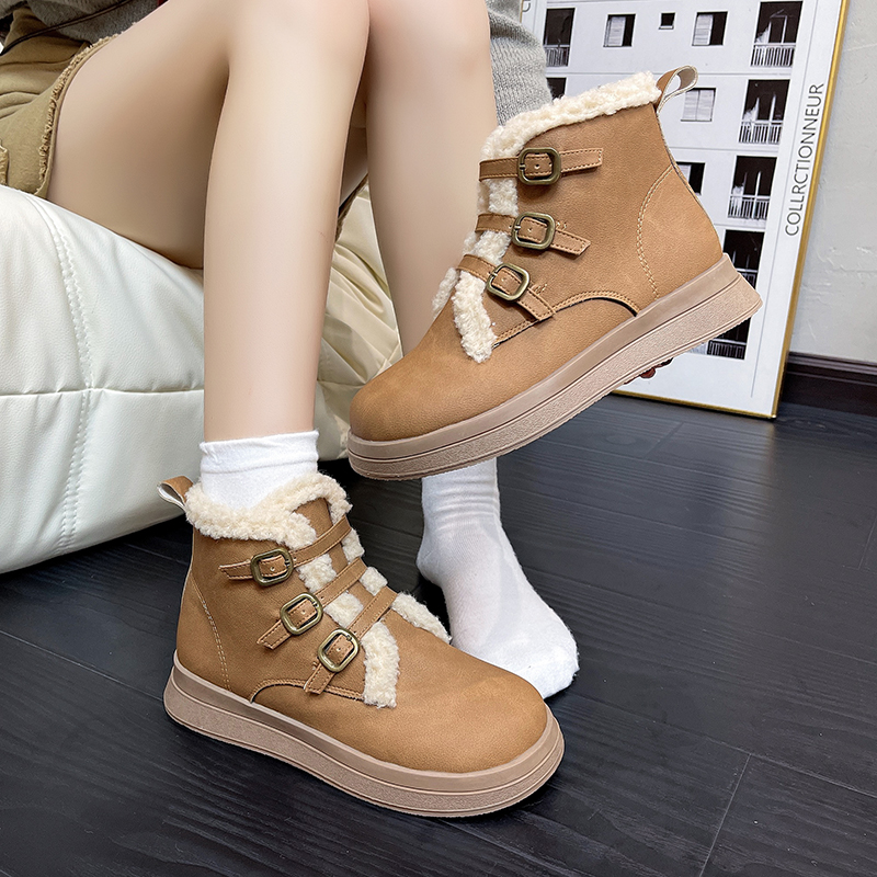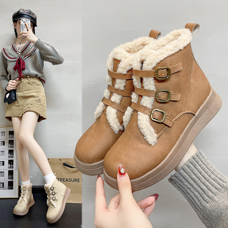 女靴子靴子韩版潮时尚保暖防滑短靴圆头粗跟