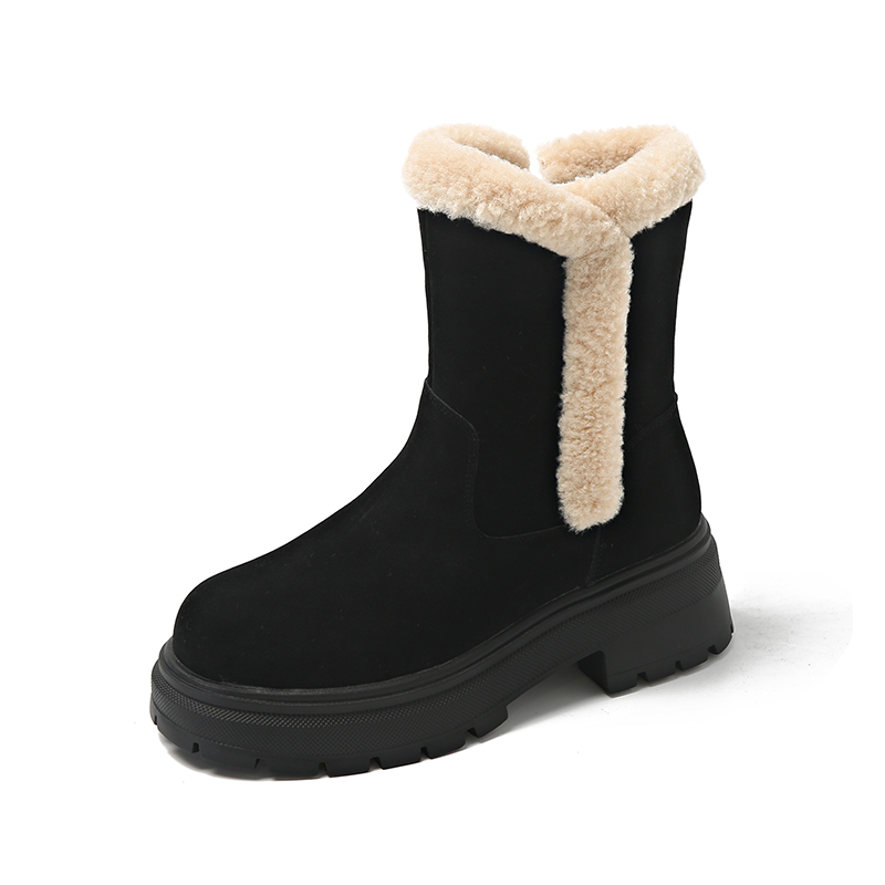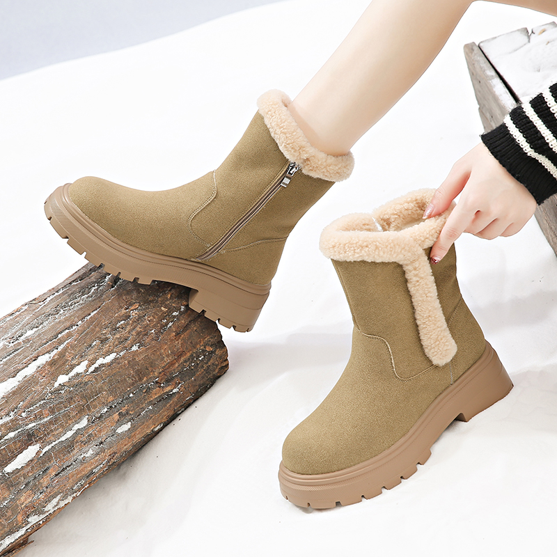 女靴子靴子韩版潮时尚保暖防滑绒面短靴圆头