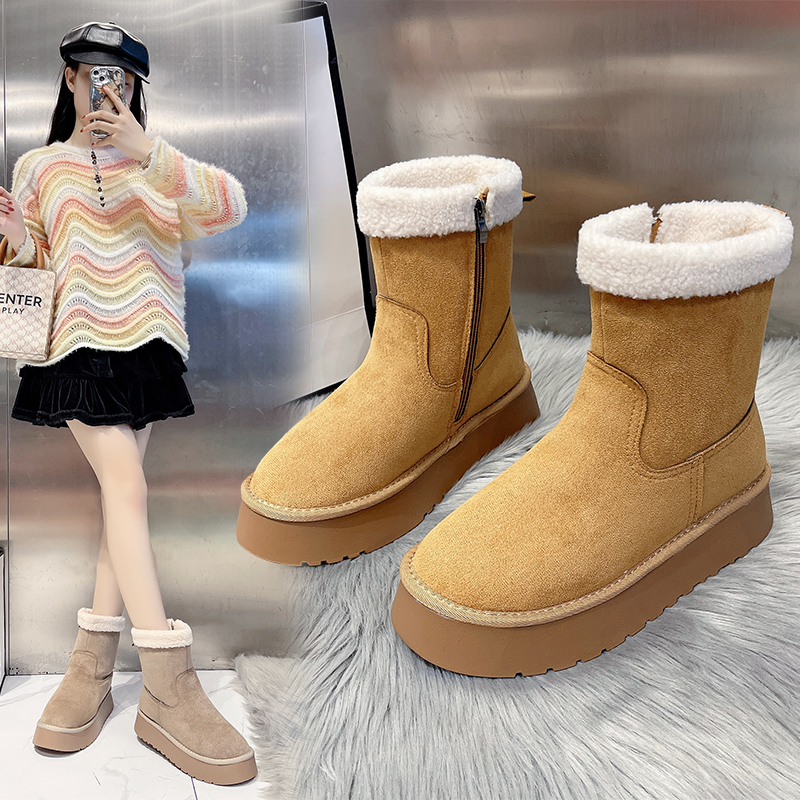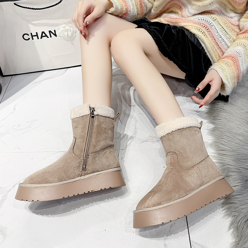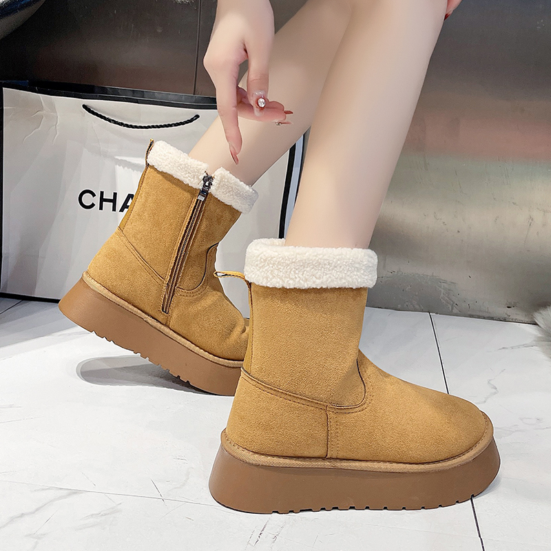 女靴子靴子韩版潮时尚保暖防滑绒面短靴圆头
