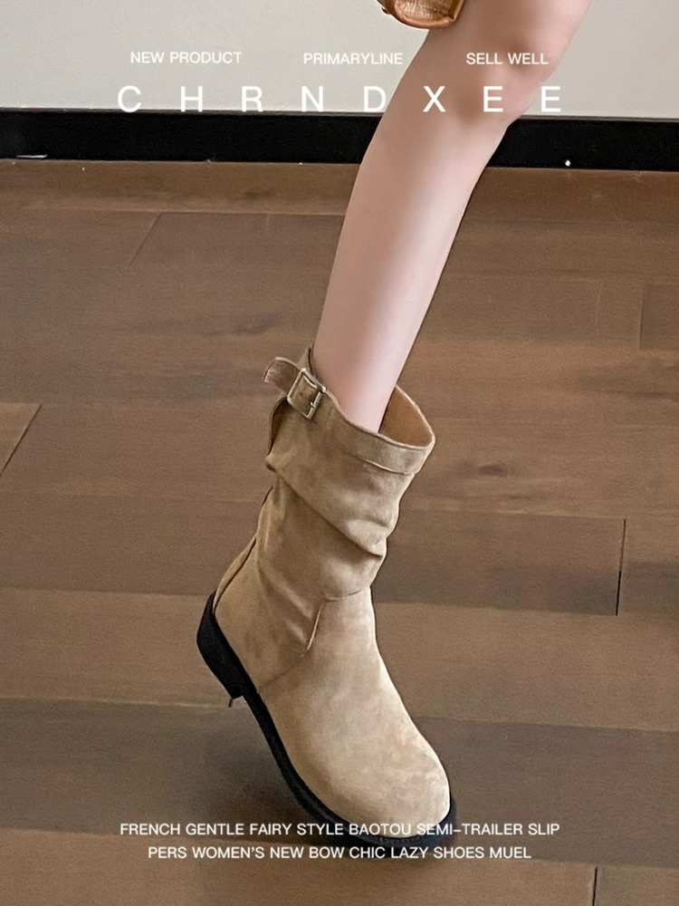 女靴子靴子韩版潮时尚保暖防滑中筒靴圆头平底鞋