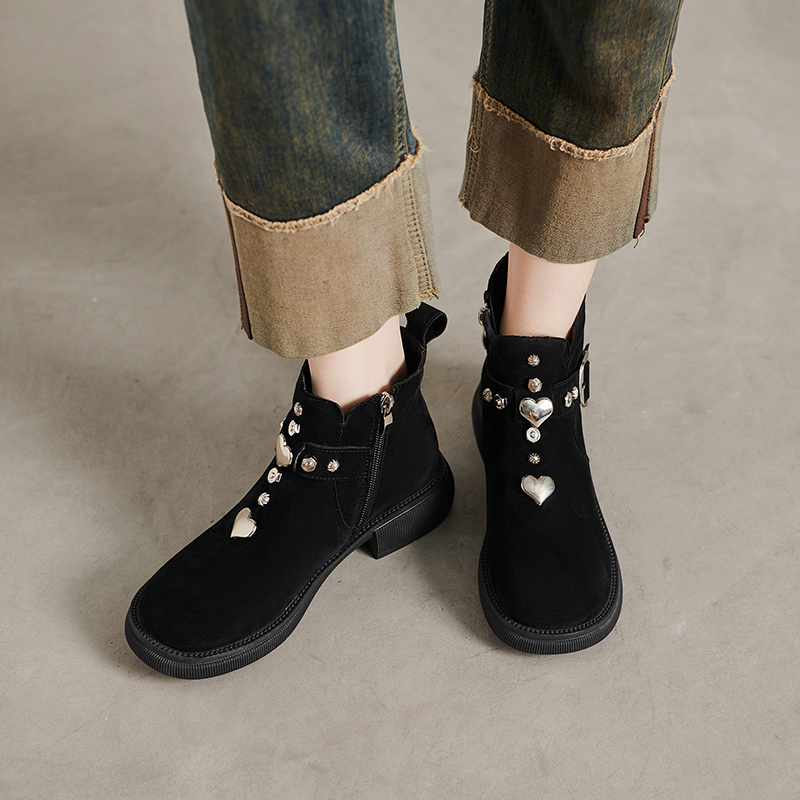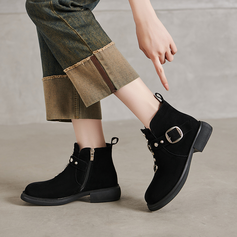 女靴子靴子韩版潮时尚保暖防滑短靴圆头粗跟