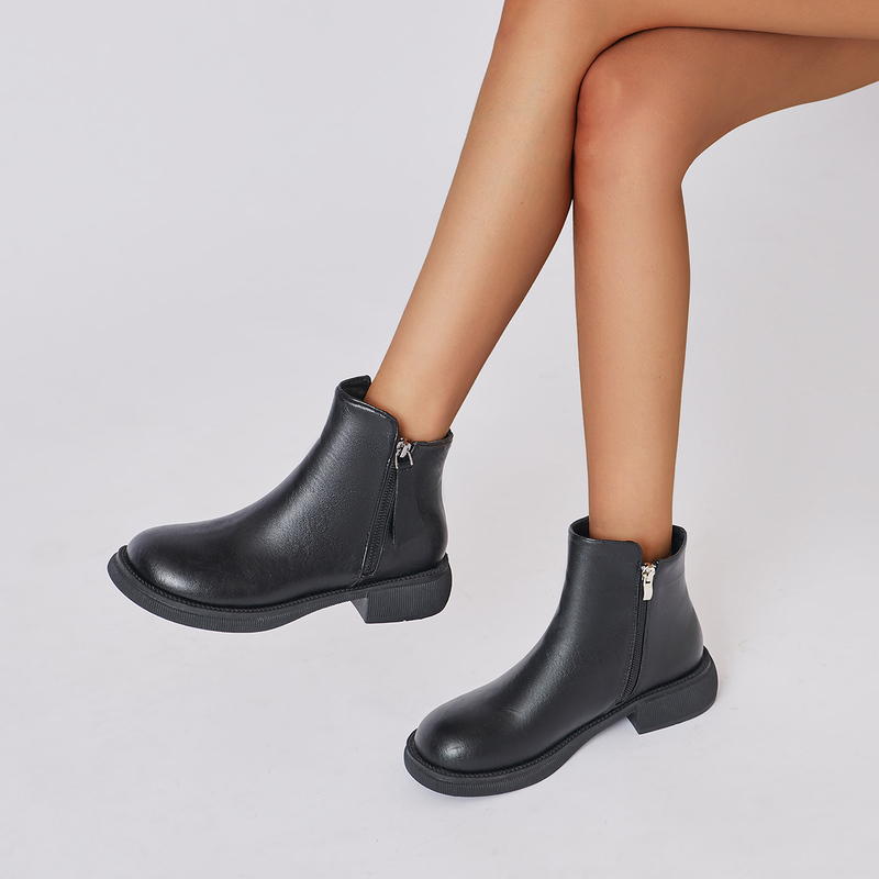女靴子靴子韩版潮时尚保暖防滑短靴圆头粗跟