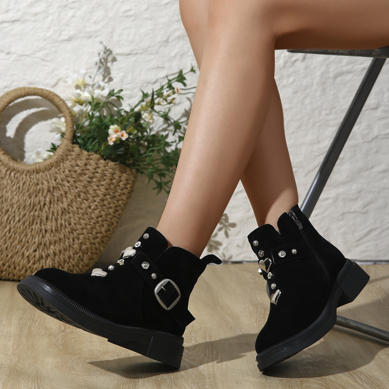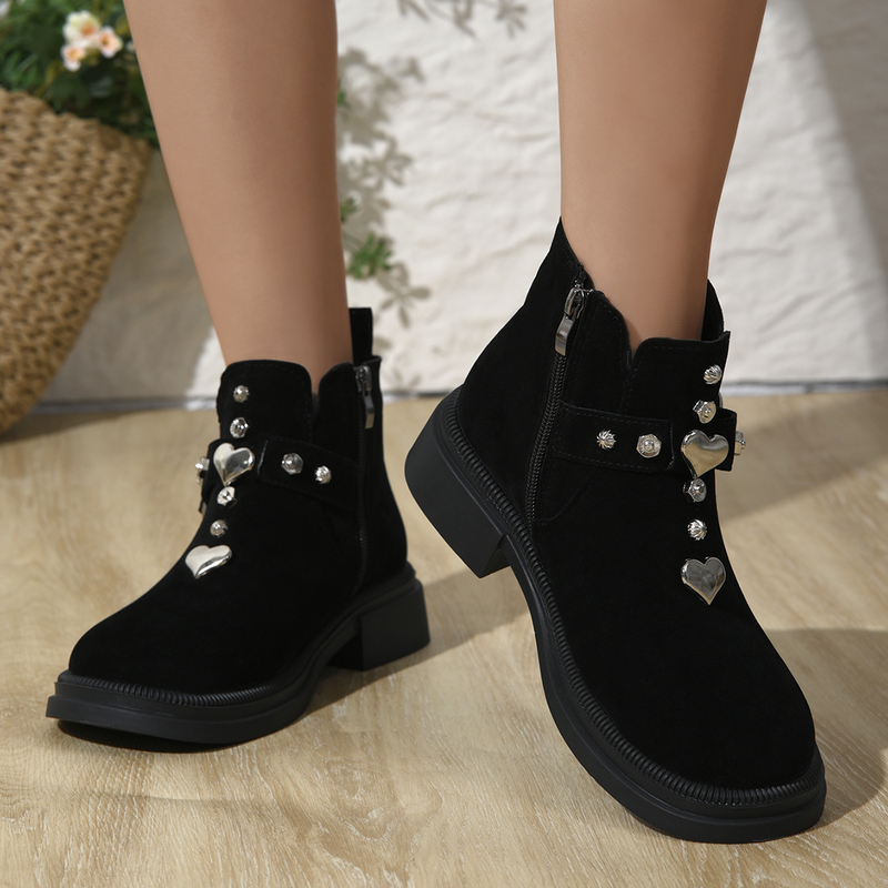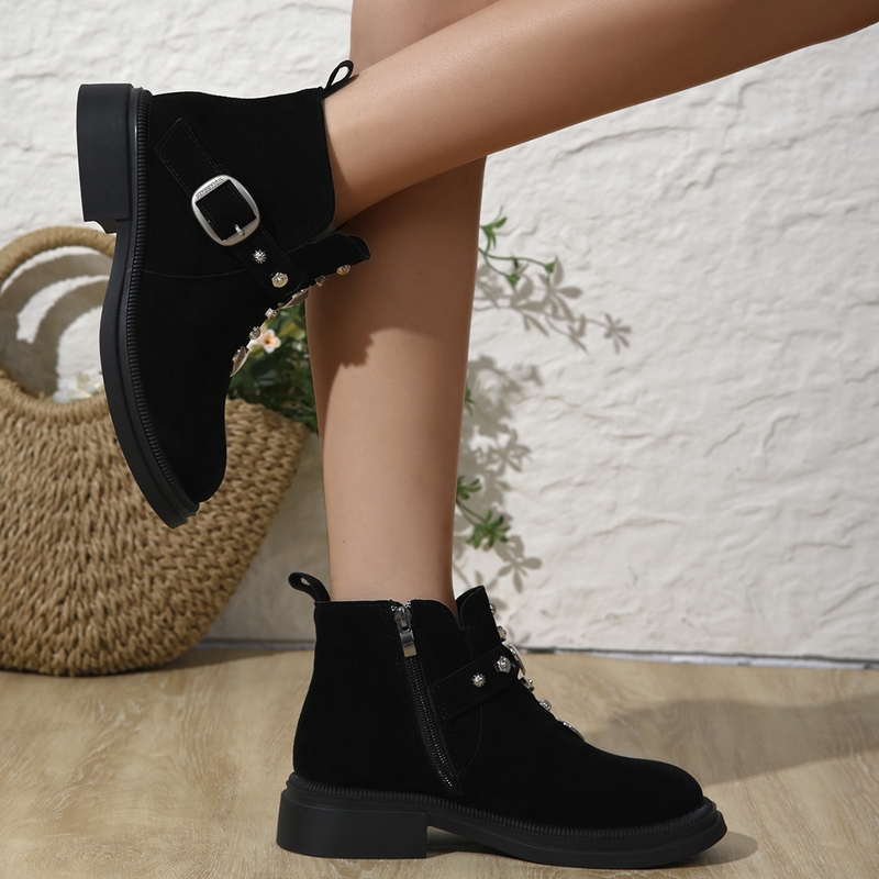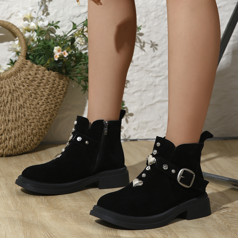 女靴子靴子韩版潮时尚保暖防滑短靴圆头粗跟