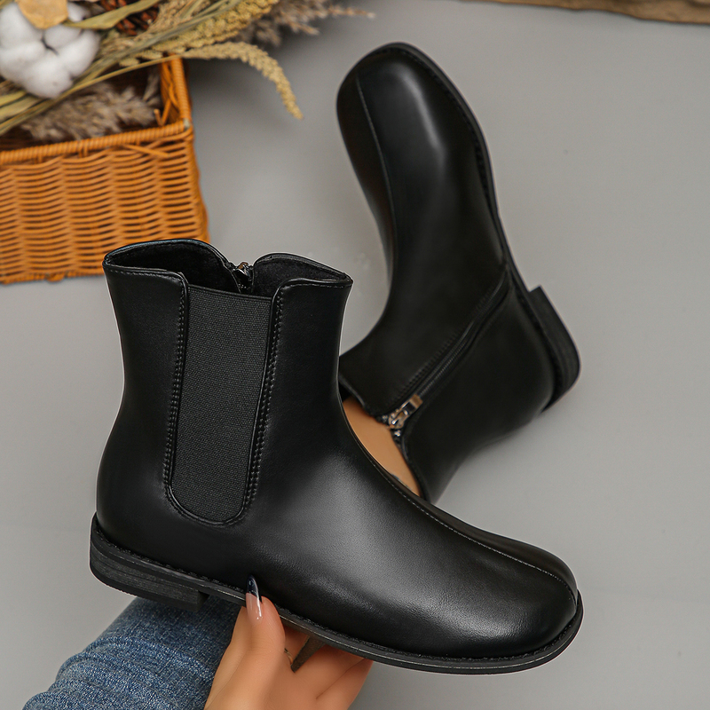 女靴子靴子韩版潮时尚保暖防滑短靴圆头粗跟