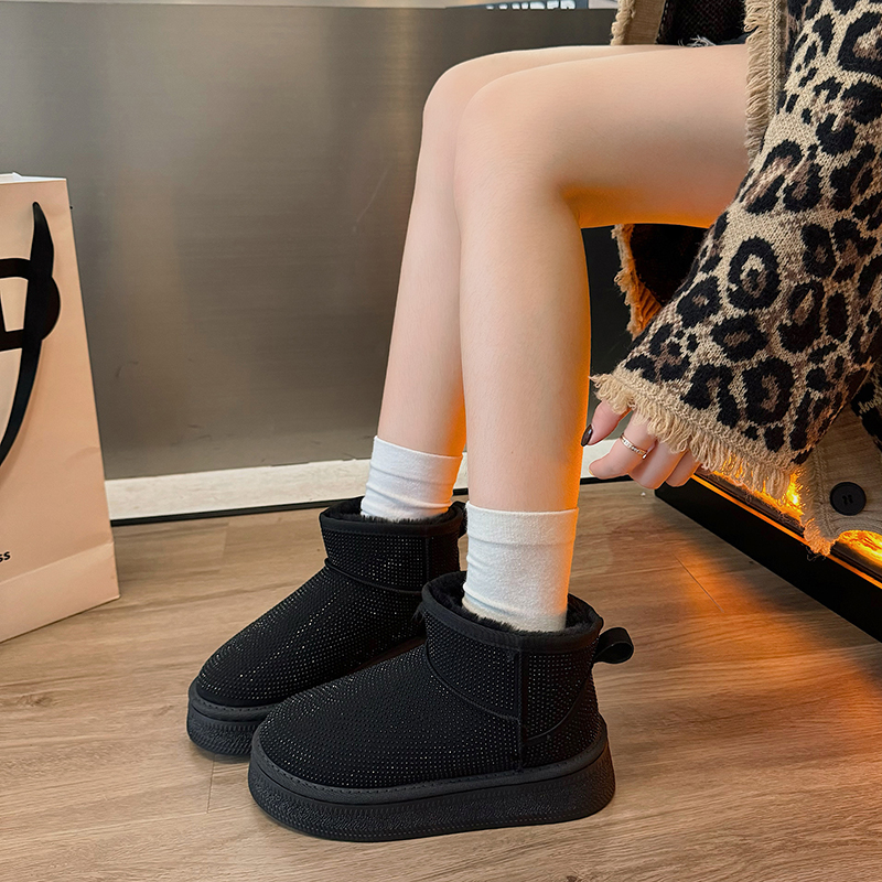 女靴子靴子韩版潮时尚保暖防滑绒面短靴圆头