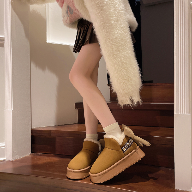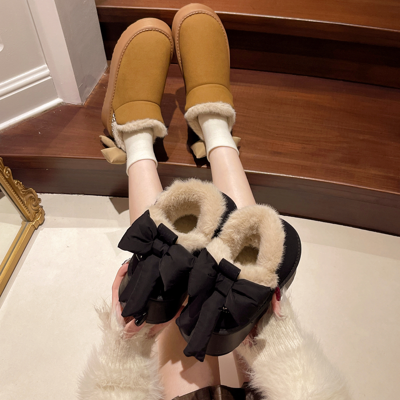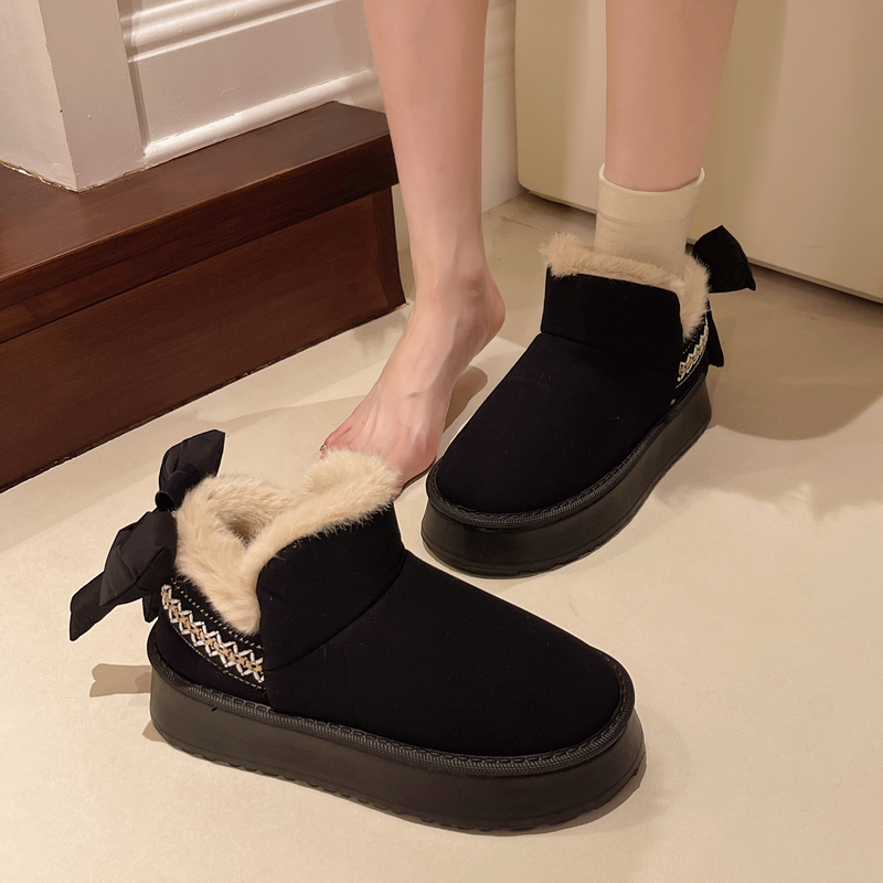 女靴子靴子韩版潮时尚保暖防滑绒面短靴圆头
