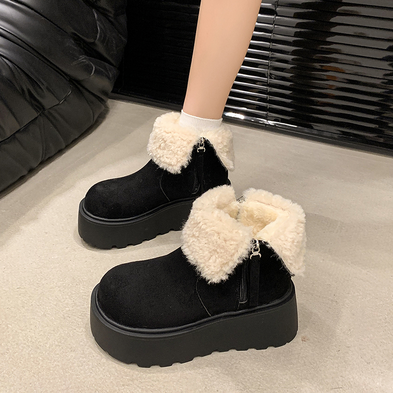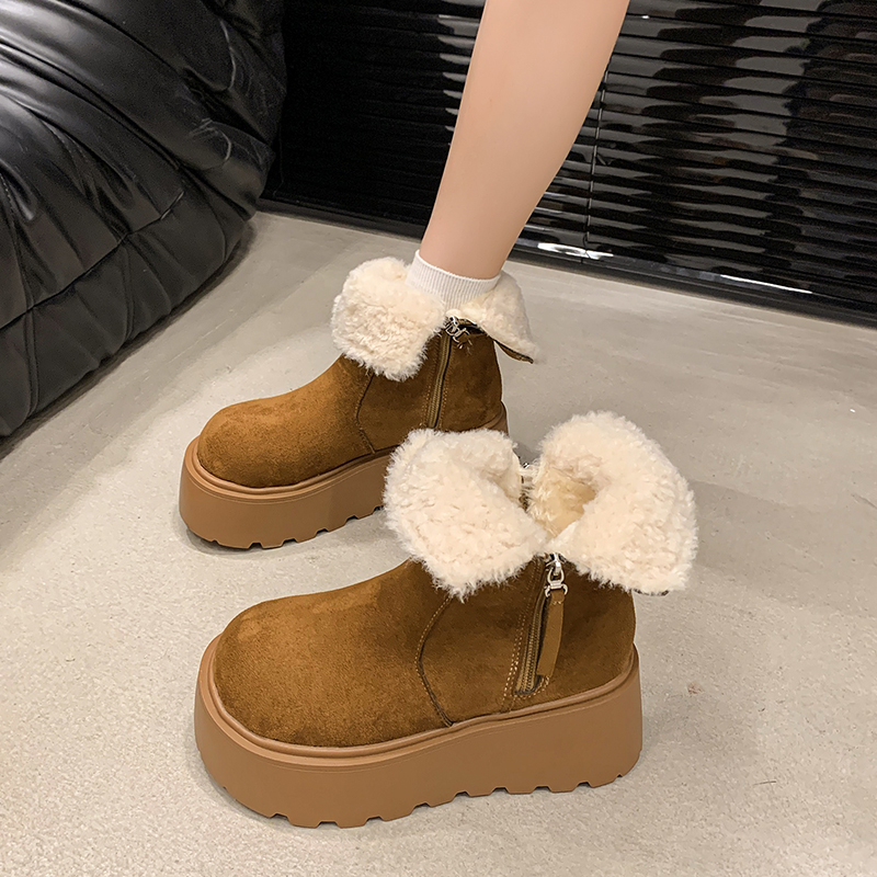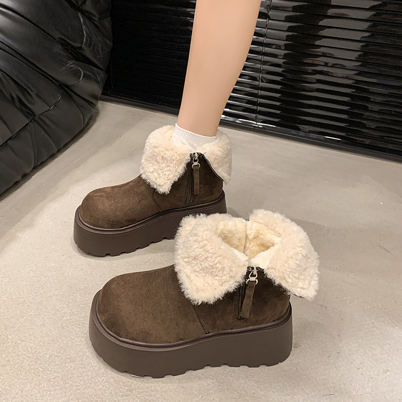 女靴子靴子韩版潮时尚保暖防滑绒面短靴圆头