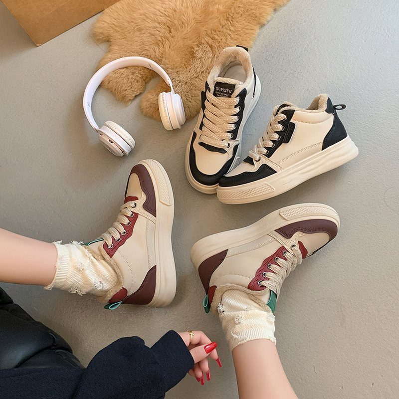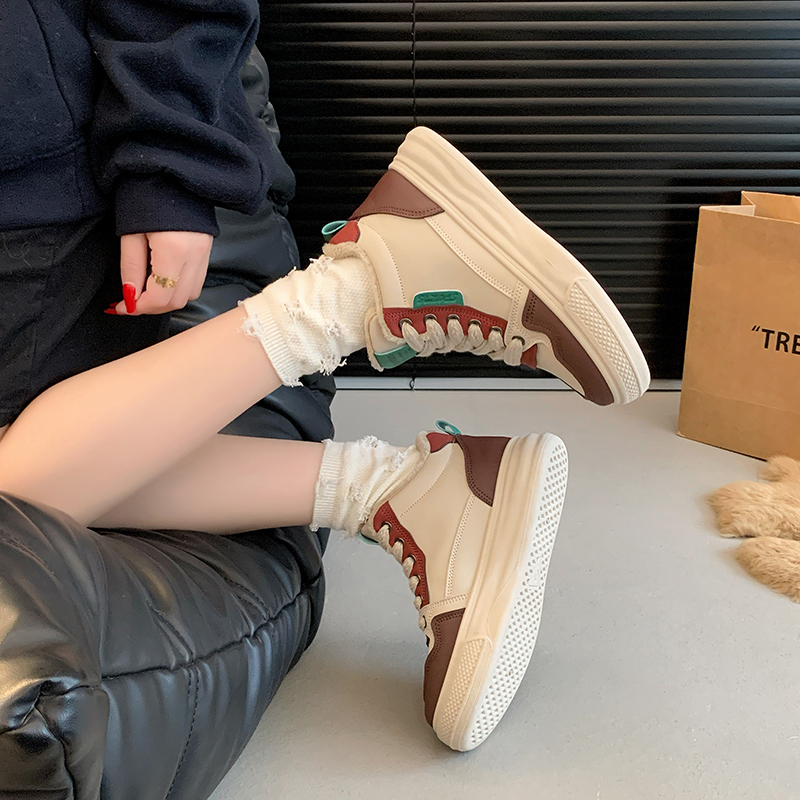 2022春季高帮鞋休闲运动鞋女鞋子单鞋高帮鞋欧美英伦时尚