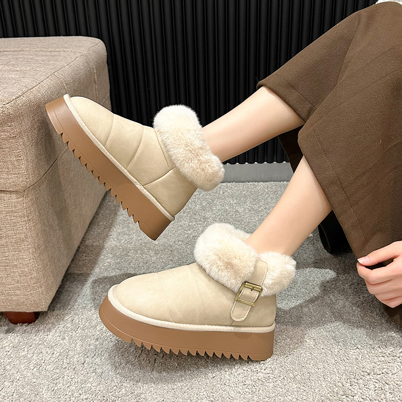 女靴子靴子韩版潮时尚保暖防滑绒面短靴圆头
