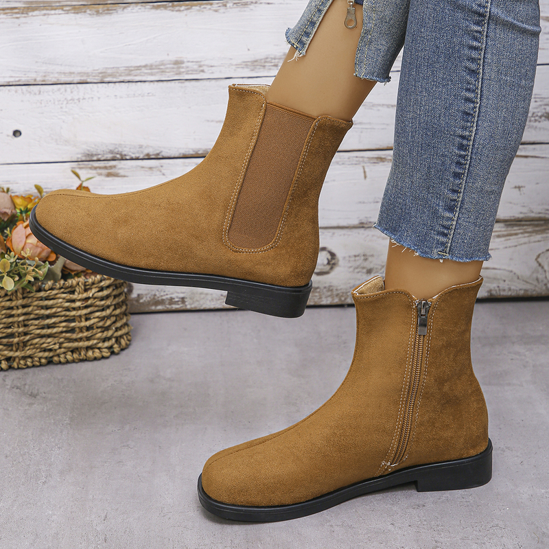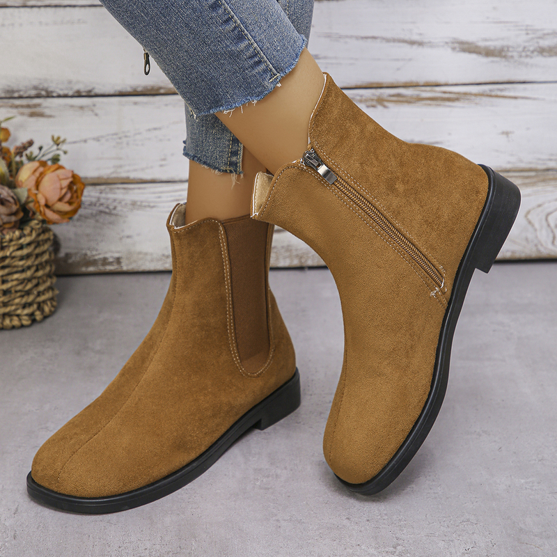 女靴子靴子韩版潮时尚保暖防滑短靴圆头粗跟