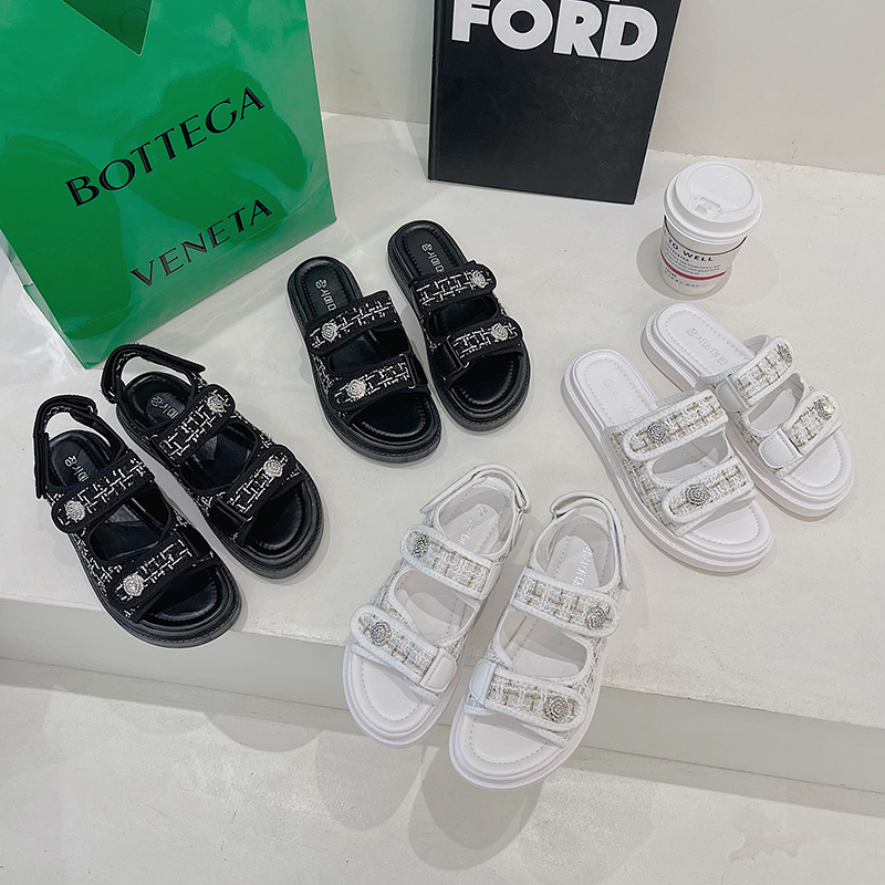 2022夏季凉拖鞋休闲鞋女鞋子拖鞋欧美英伦时尚松糕鞋