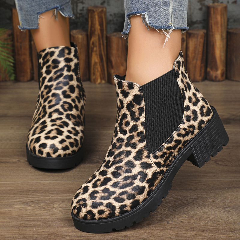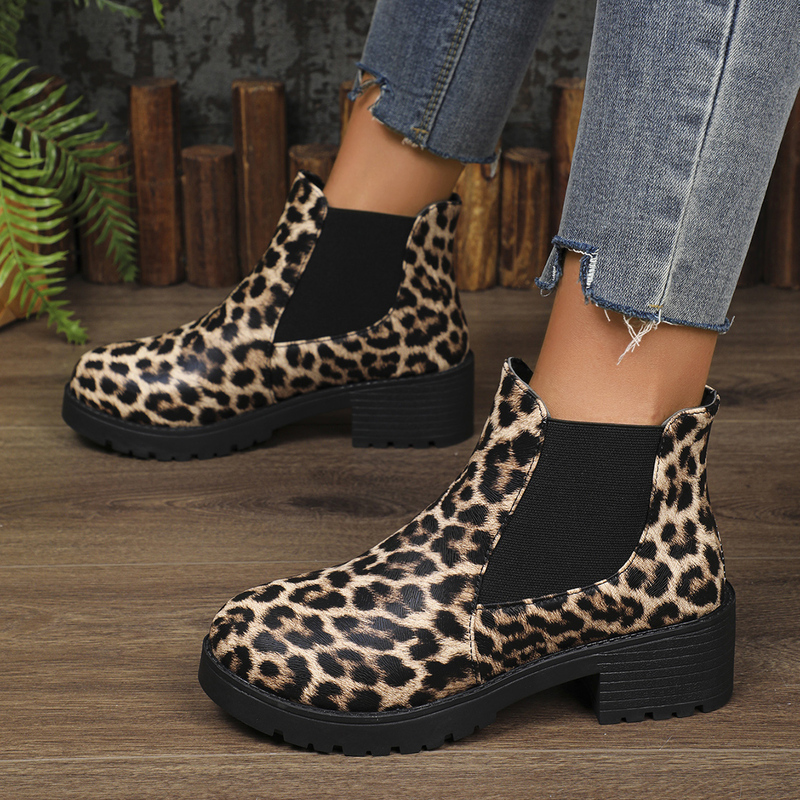 女靴子靴子韩版潮时尚保暖防滑短靴圆头粗跟