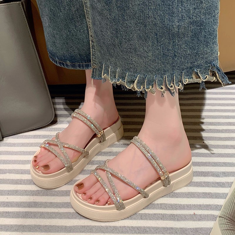 2022夏季凉拖鞋休闲鞋女鞋子拖鞋欧美英伦时尚松糕鞋