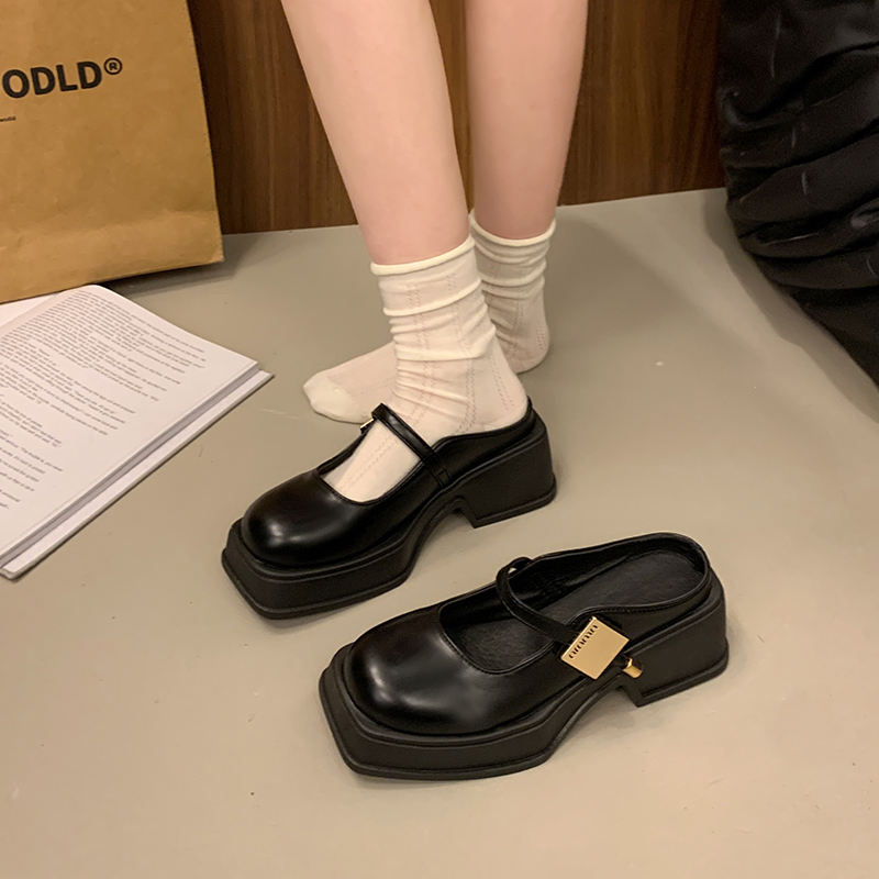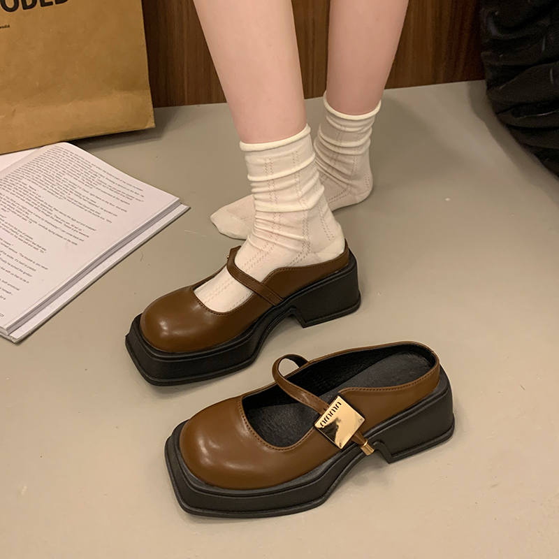 2022夏季凉拖鞋休闲鞋女鞋子拖鞋欧美英伦时尚粗跟