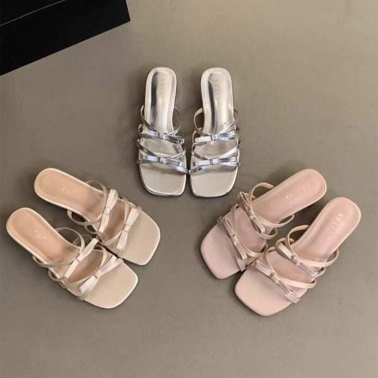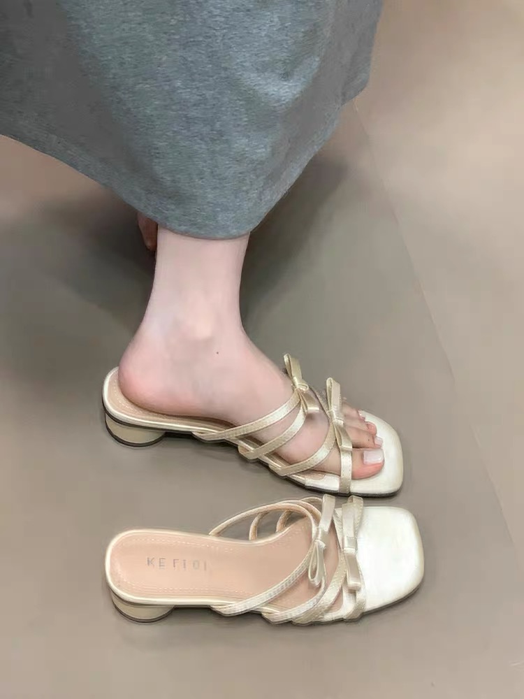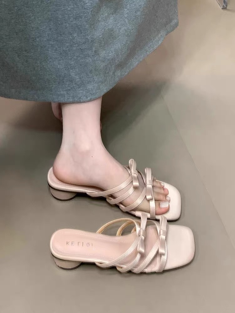 2022夏季凉拖鞋休闲鞋女鞋子拖鞋欧美英伦时尚粗跟