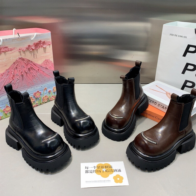 女靴子靴子韩版潮时尚保暖防滑短靴圆头粗跟