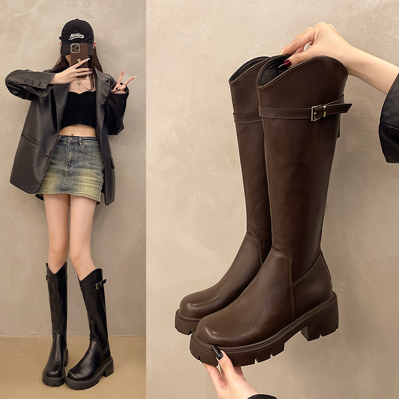 女靴子靴子韩版潮时尚保暖防滑长靴圆头粗跟