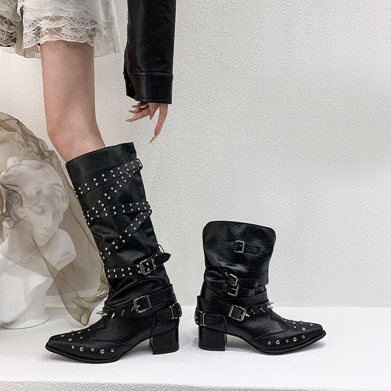 女靴子靴子韩版潮时尚保暖防滑短靴圆头粗跟