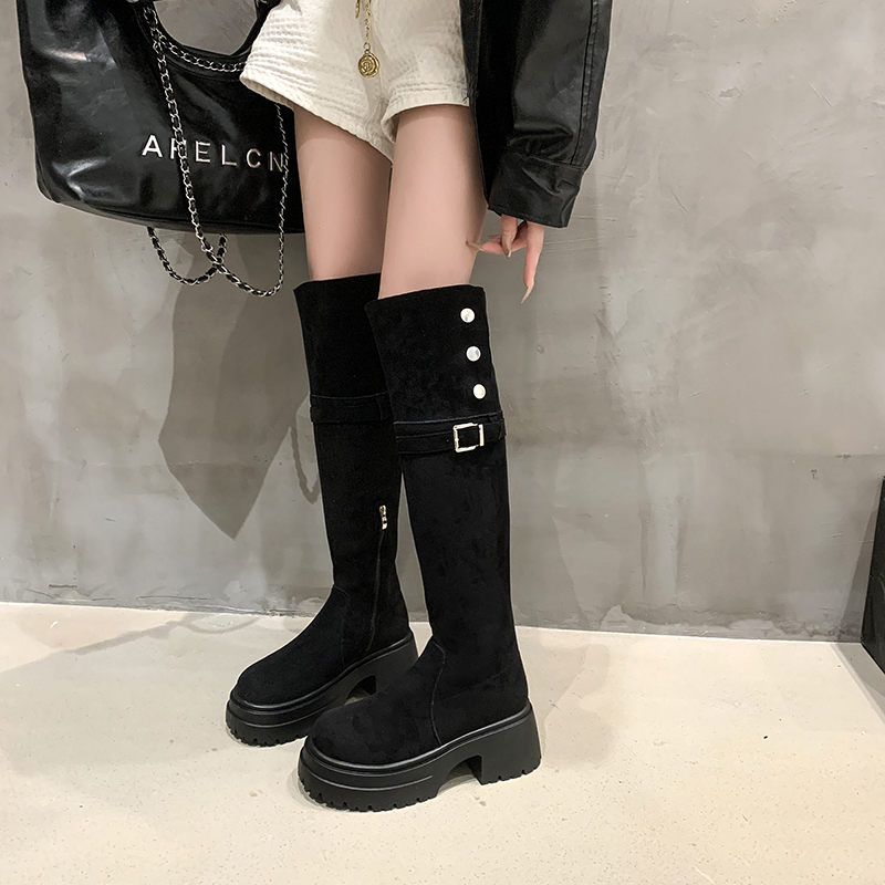 女靴子靴子韩版潮时尚保暖防滑长靴圆头粗跟