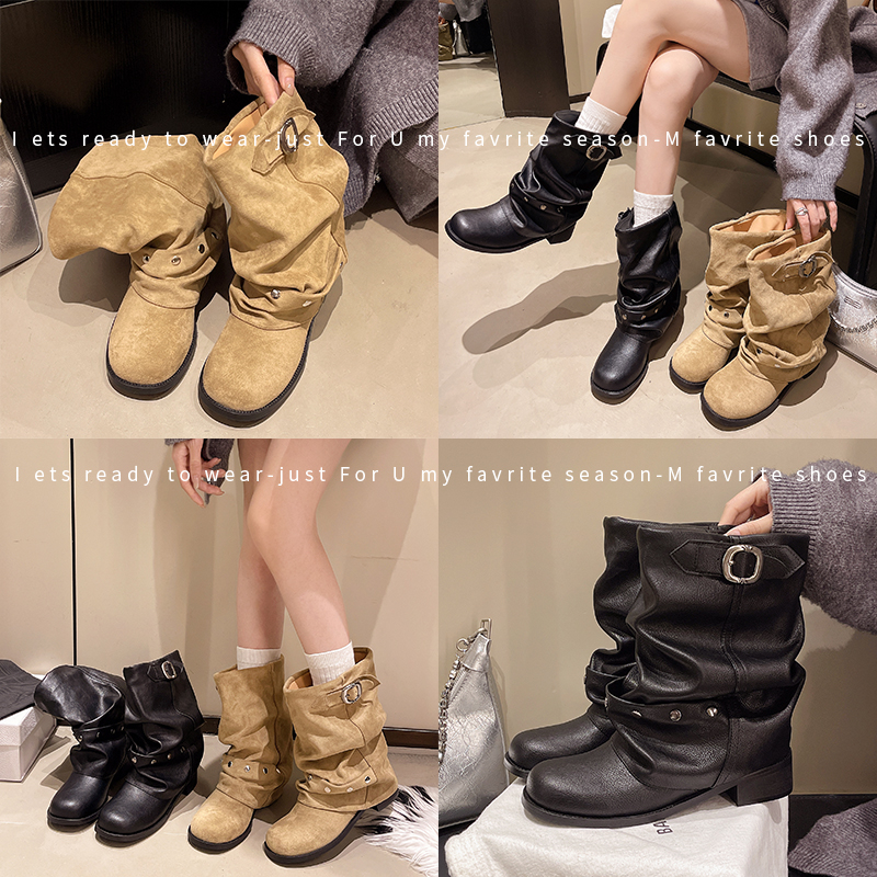 女靴子靴子韩版潮时尚保暖防滑长靴圆头粗跟