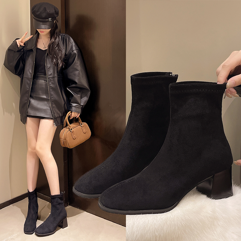 女靴子靴子韩版潮时尚保暖防滑短靴圆头粗跟