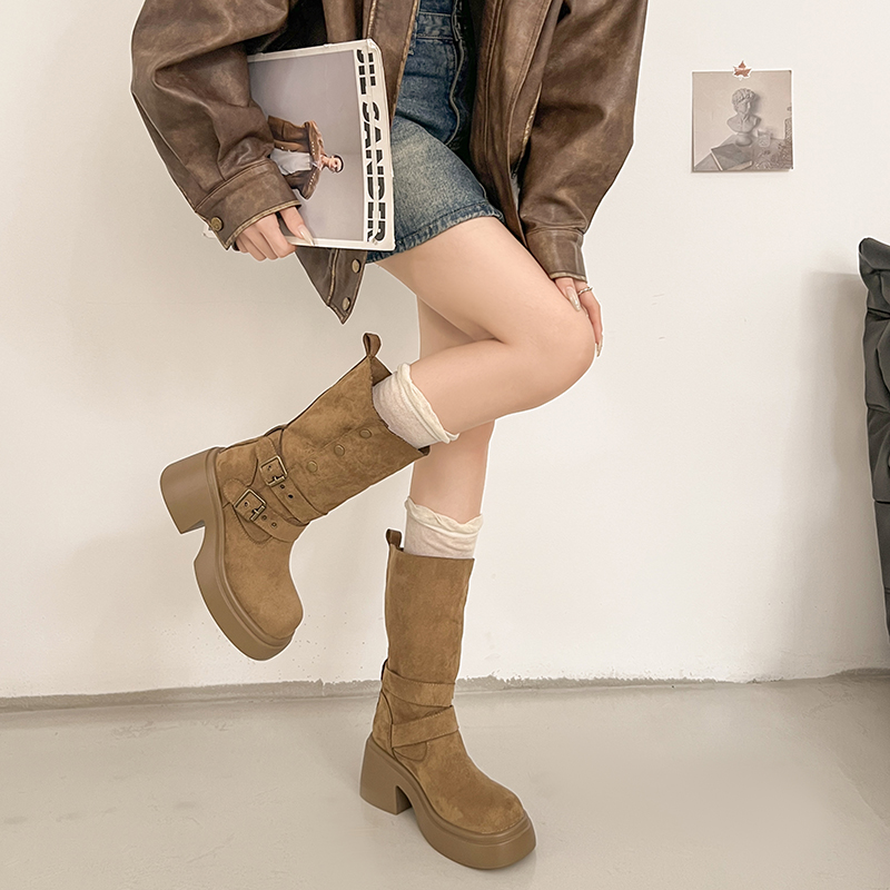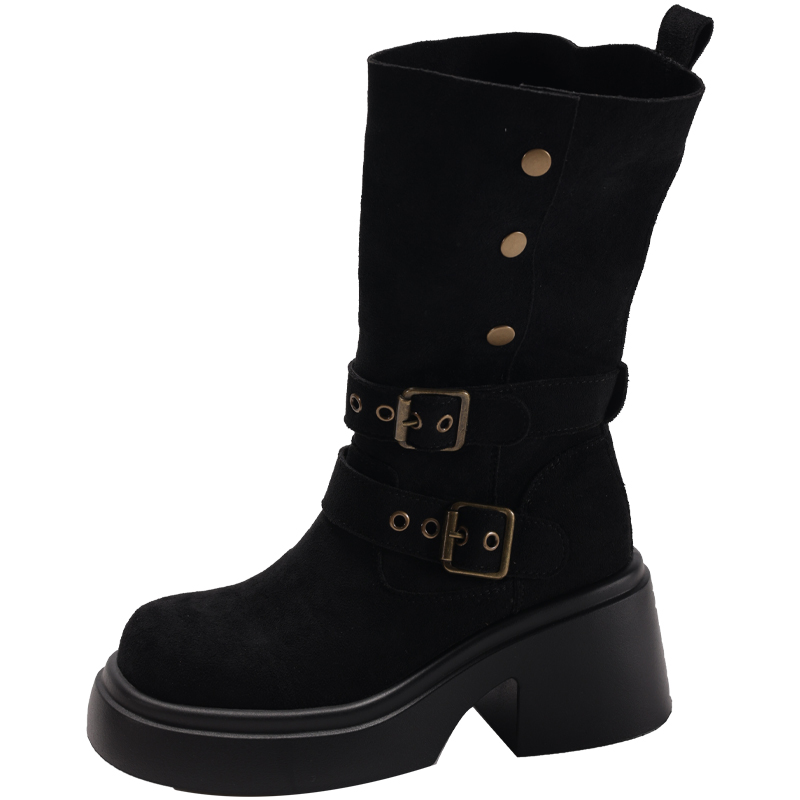 女靴子靴子韩版潮时尚保暖防滑短靴圆头粗跟