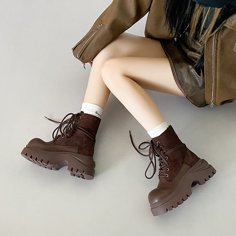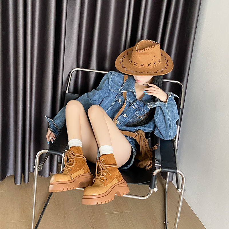 女靴子靴子韩版潮时尚保暖防滑短靴圆头粗跟