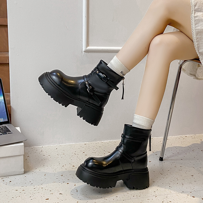 女靴子靴子韩版潮时尚保暖防滑短靴圆头粗跟