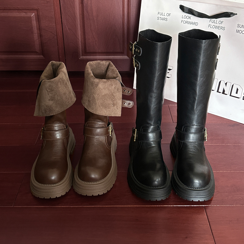 女靴子靴子韩版潮时尚保暖防滑长靴圆头粗跟