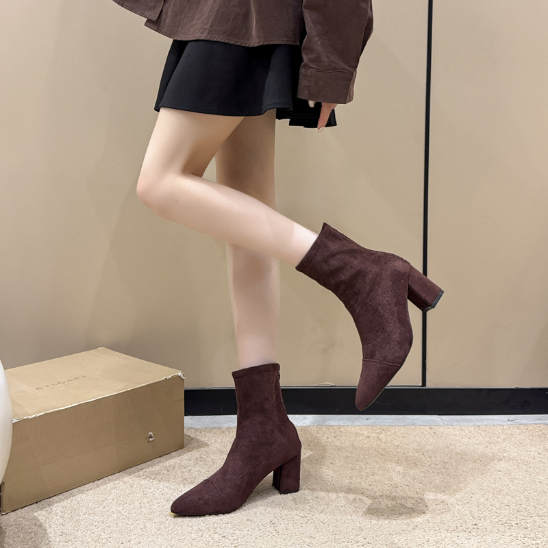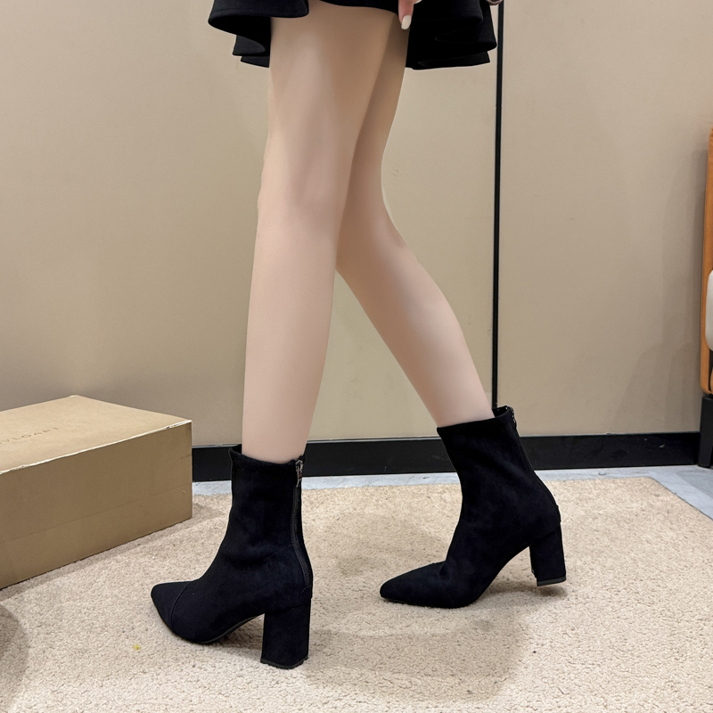 女靴子靴子韩版潮时尚保暖防滑短靴圆头粗跟