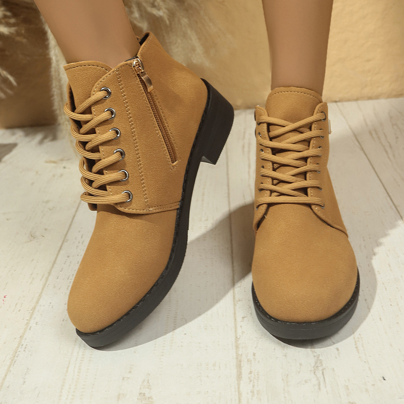 女靴子靴子韩版潮时尚保暖防滑短靴圆头粗跟