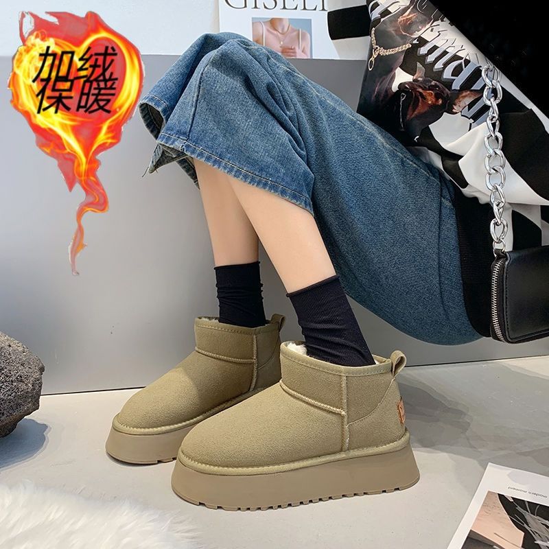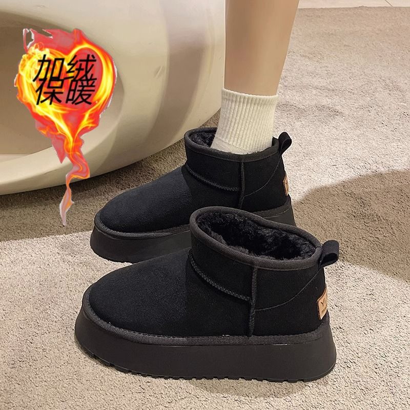 女靴子靴子韩版潮时尚保暖防滑绒面短靴圆头