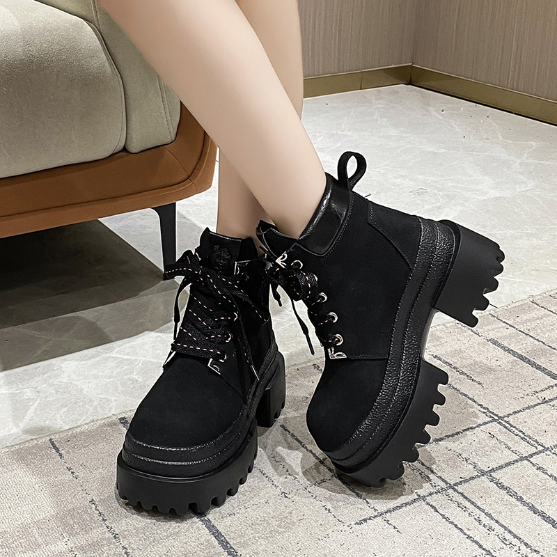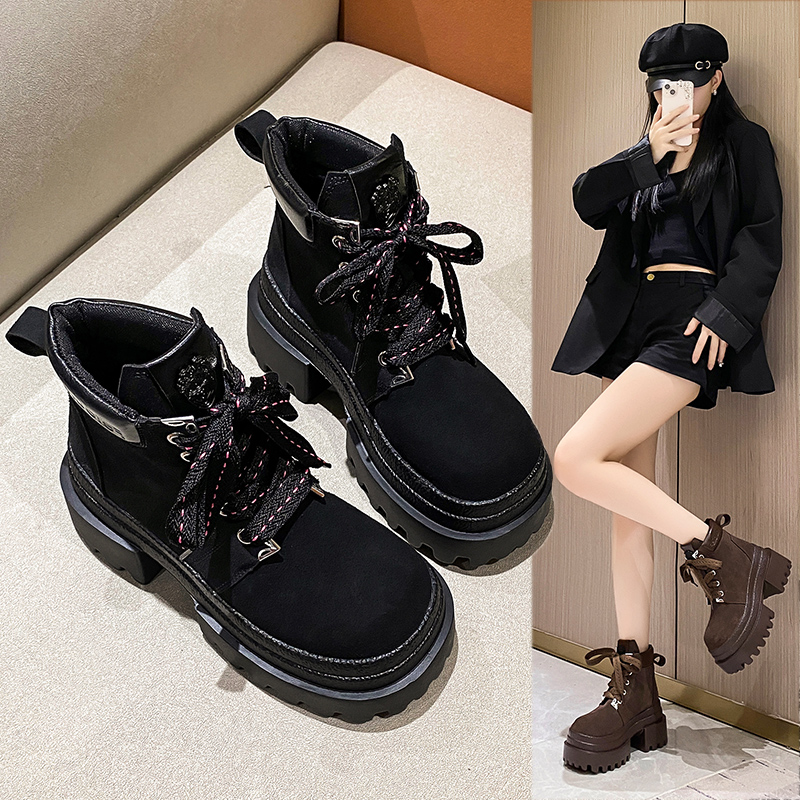 女靴子靴子韩版潮时尚保暖防滑短靴圆头粗跟