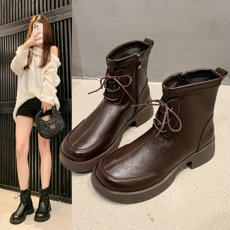 女靴子靴子韩版潮时尚保暖防滑短靴圆头粗跟
