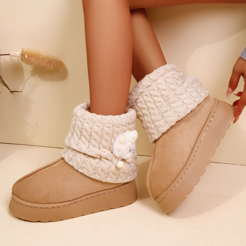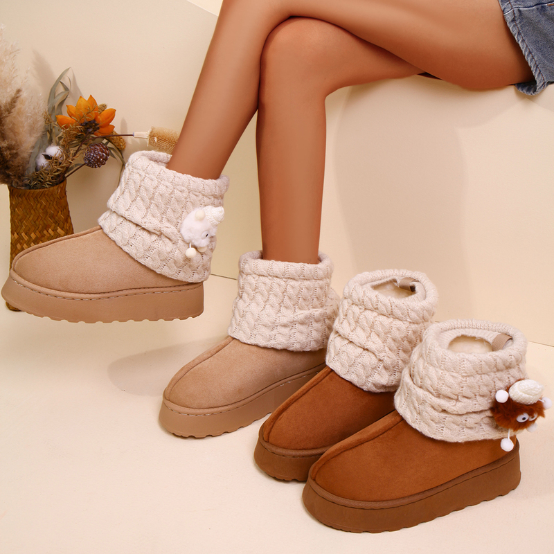 女靴子靴子韩版潮时尚保暖防滑绒面短靴圆头