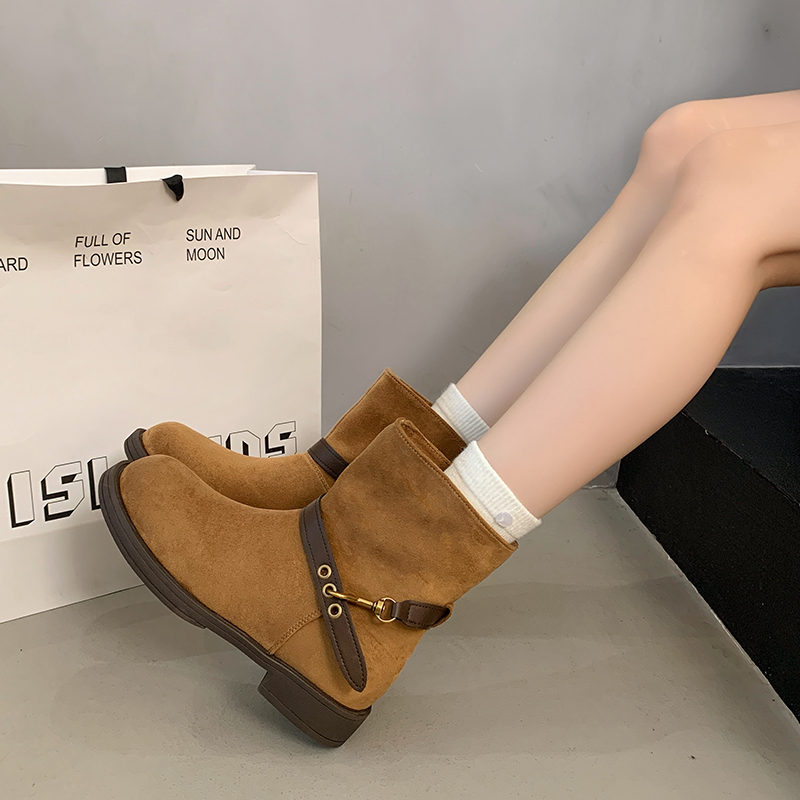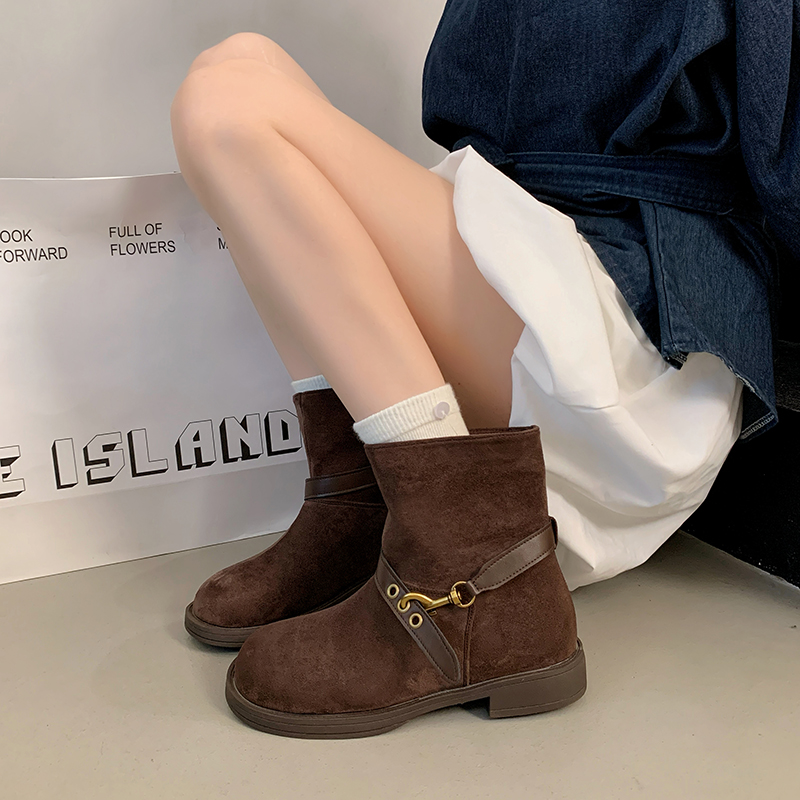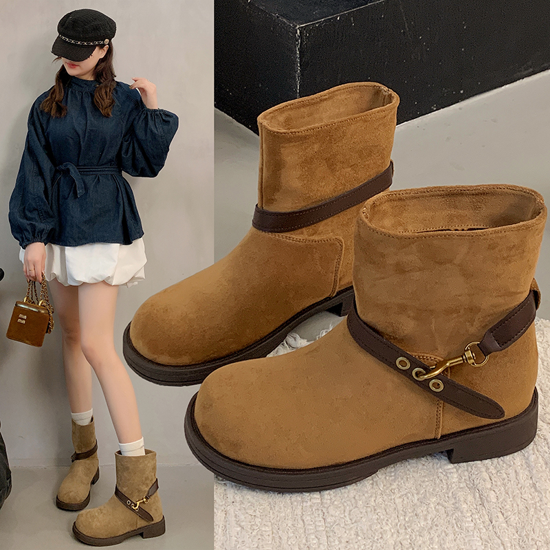 女靴子靴子韩版潮时尚保暖防滑短靴圆头粗跟