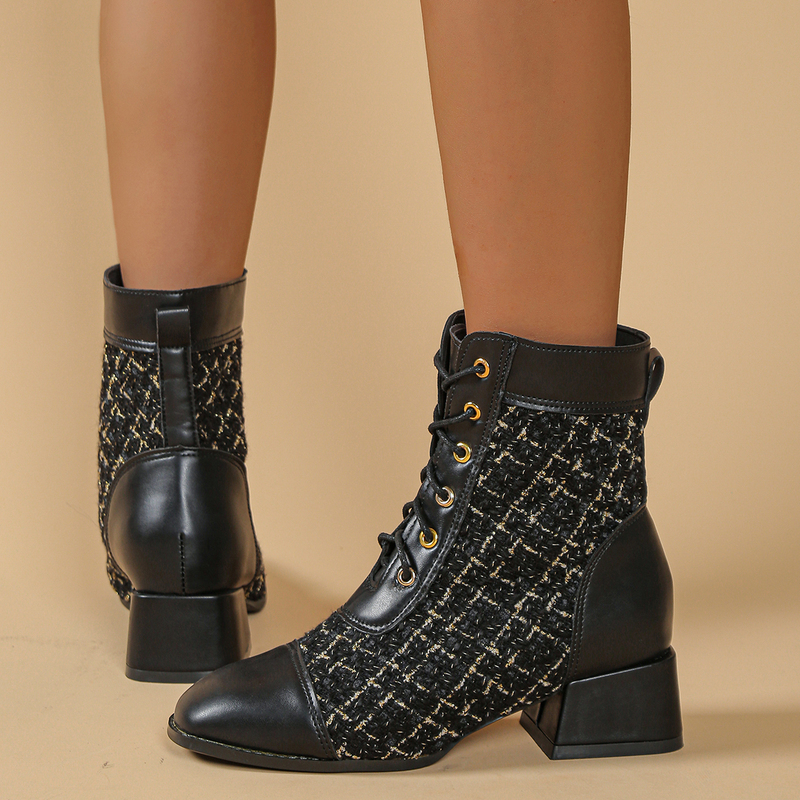 女靴子靴子韩版潮时尚保暖防滑短靴圆头粗跟