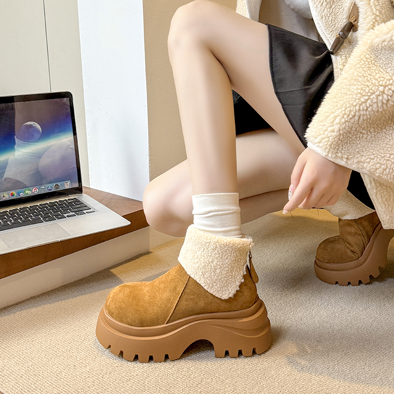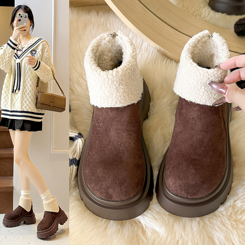 女靴子靴子韩版潮时尚保暖防滑绒面短靴圆头