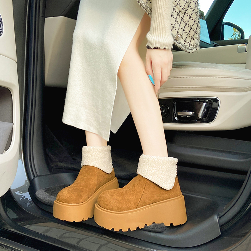 女靴子靴子韩版潮时尚保暖防滑绒面短靴圆头