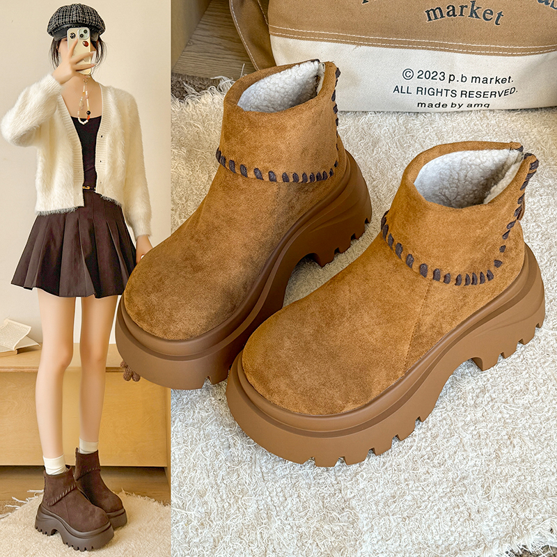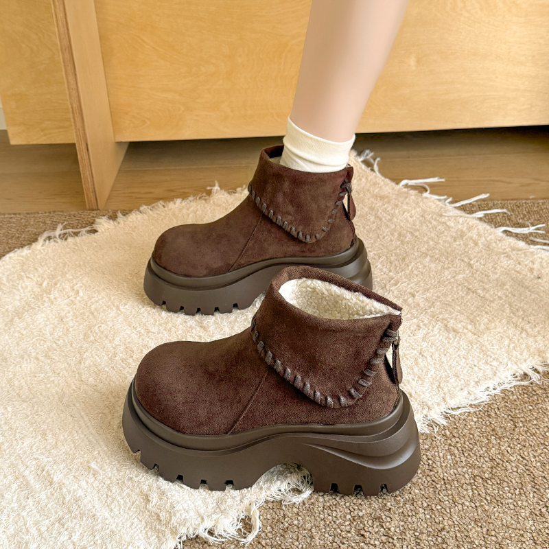 女靴子靴子韩版潮时尚保暖防滑短靴圆头粗跟