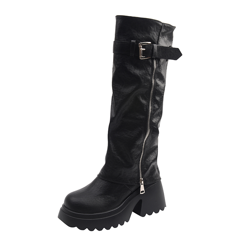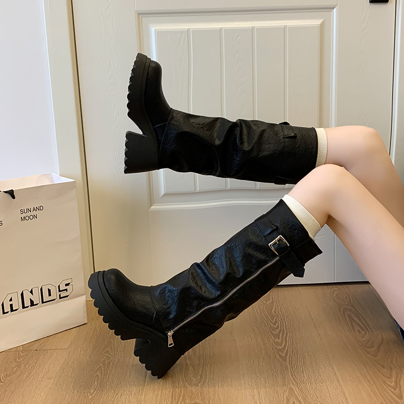 女靴子靴子韩版潮时尚保暖防滑长靴圆头粗跟
