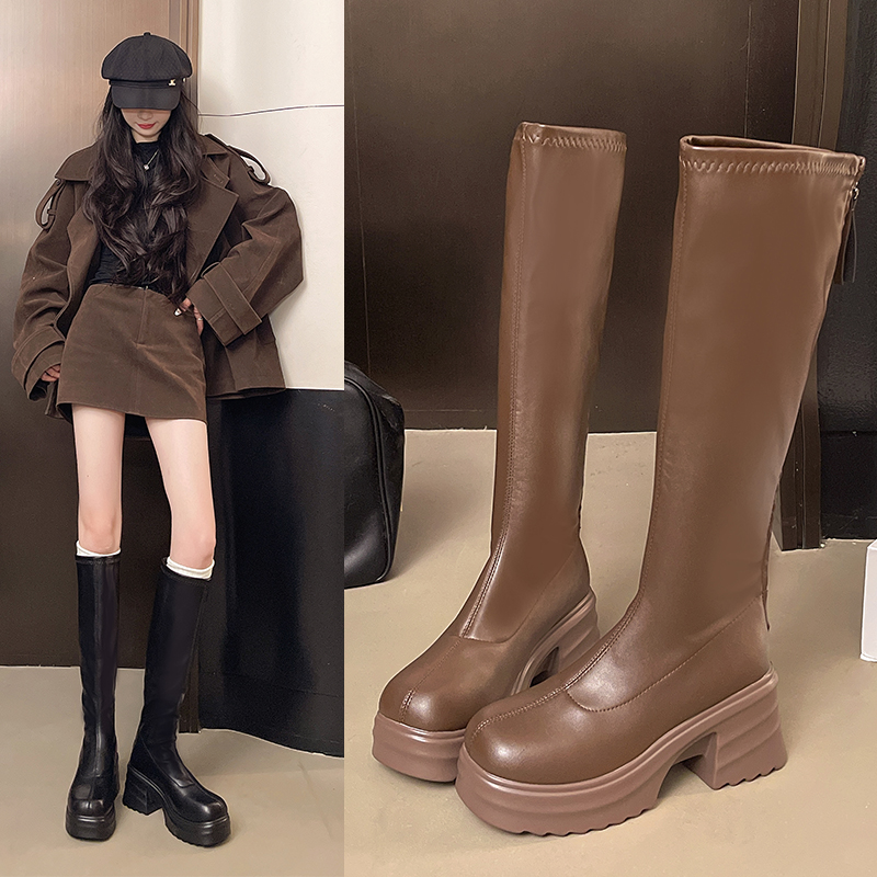 女靴子靴子韩版潮时尚保暖防滑长靴圆头粗跟