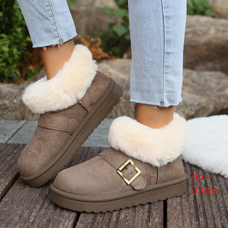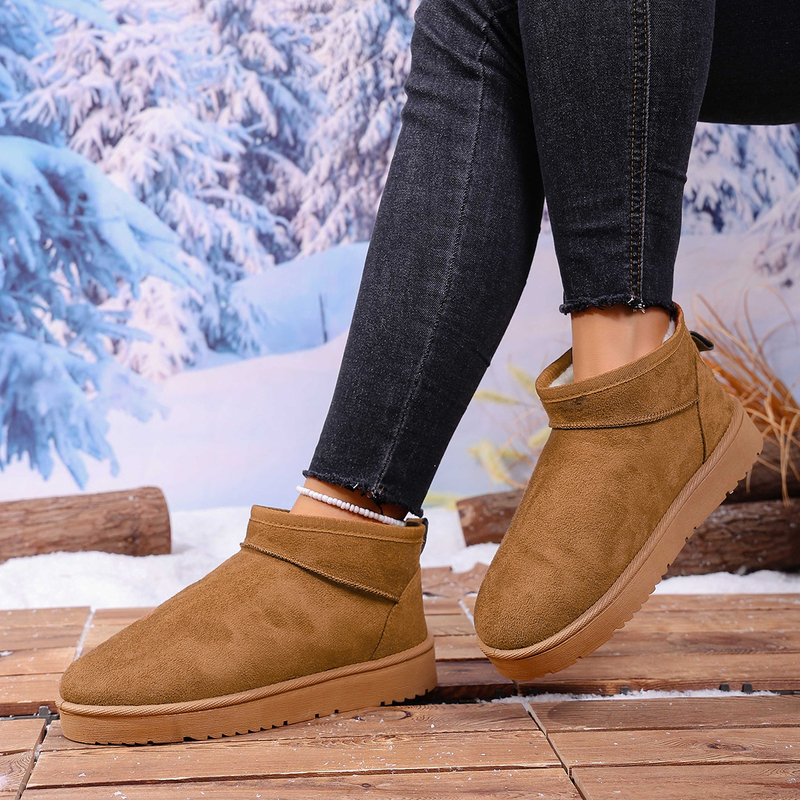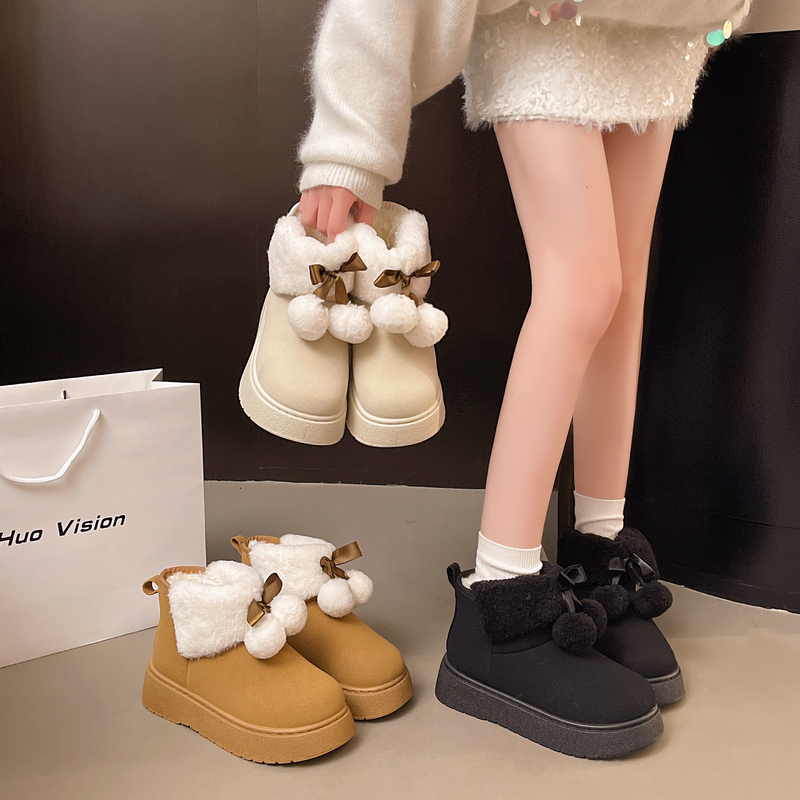 女靴子靴子韩版潮时尚保暖防滑绒面短靴圆头