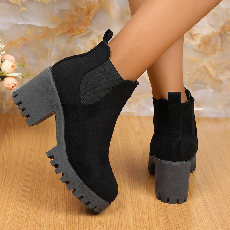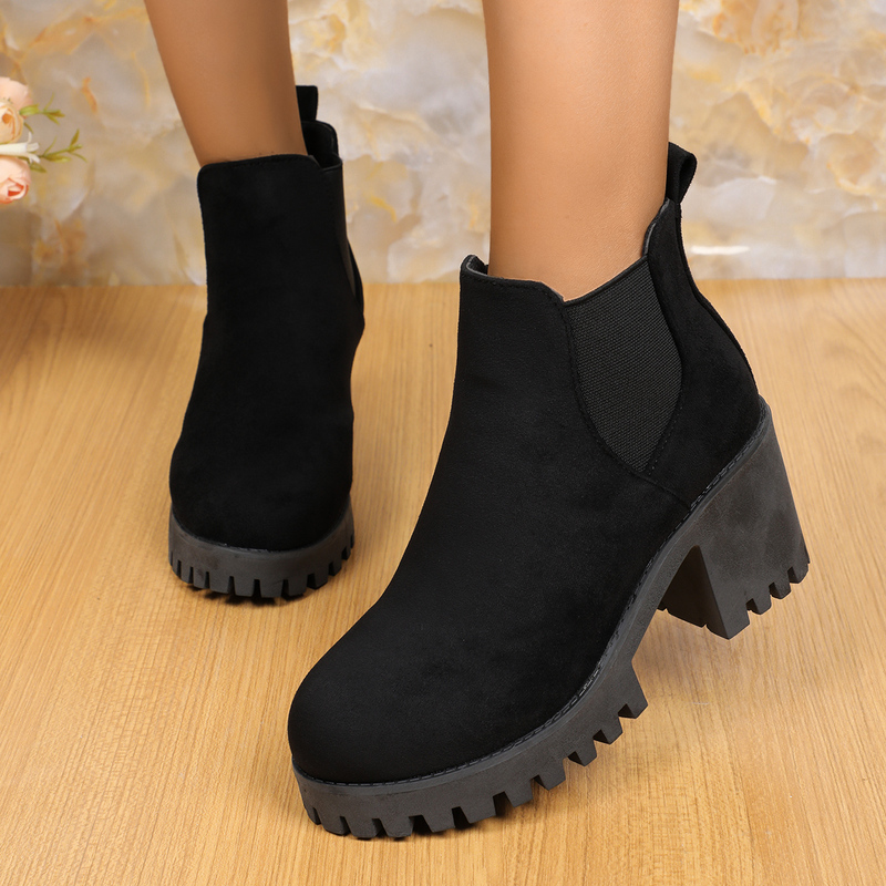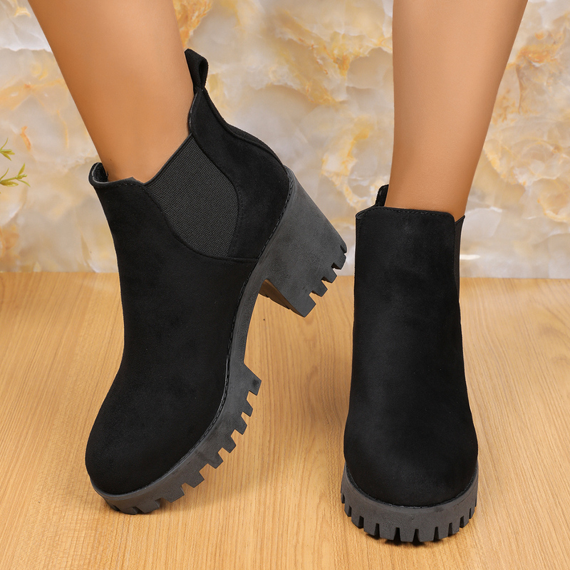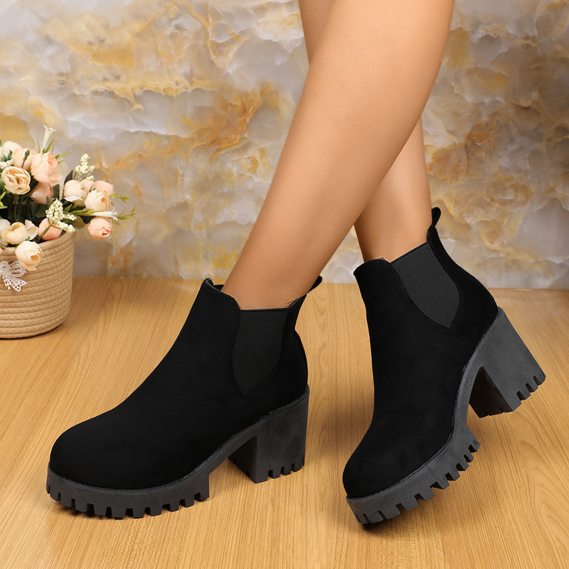 女靴子靴子韩版潮时尚保暖防滑短靴圆头粗跟