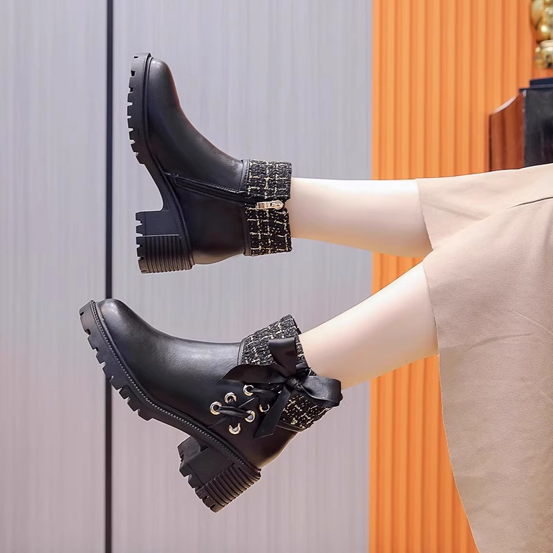 女靴子靴子韩版潮时尚保暖防滑短靴圆头粗跟